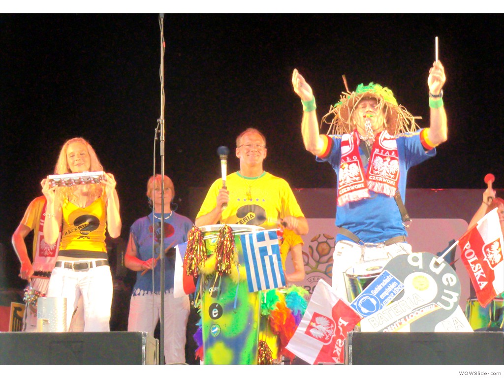 Die Organisatoren der Fanzone in Wrocław beauftragten die Sambistas mit Auftritten auf der Hauptbühne vor und in der Halbzeitpause des Spiels Polen gegen Russland und die Fanzone ist gedrängt voll! Natürlich müssen sich alle jetzt erstmal richtig "aufbretzeln":